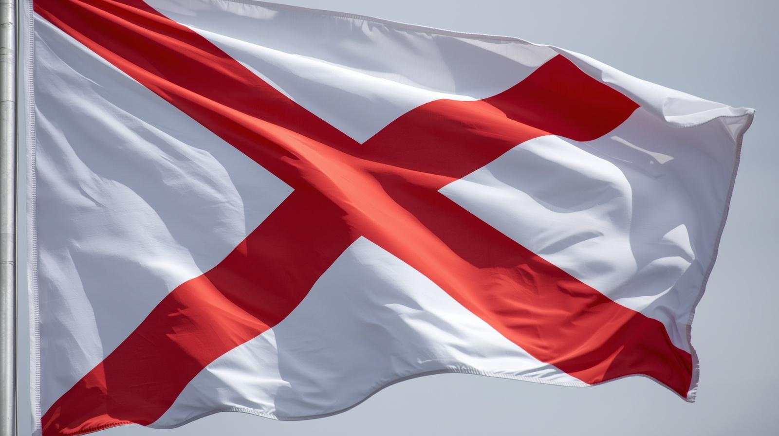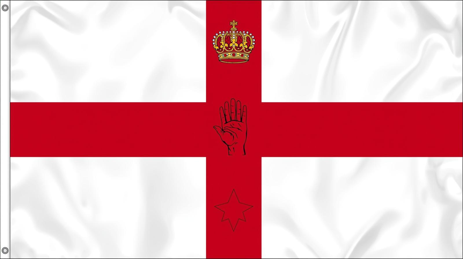 The Ulster Banner, a red cross with a red hand, crown, and star on white, was used as the de facto flag of Northern Ireland from 1953 until the dissolution of the Stormont Parliament in 1972. Though no longer an official flag, it is still flown informally in Northern Ireland and appears on St Patrick’s Day alongside the Union Jack in unionist areas. Its status remains politically sensitive.
