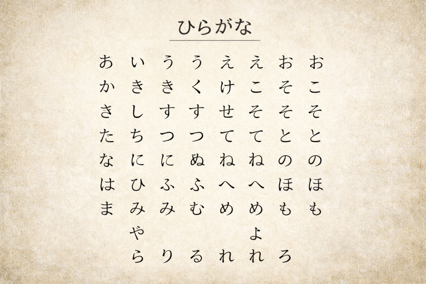 Hiragana is a syllabic script with 46 basic characters, each representing a syllable. It’s used for native Japanese words, grammatical particles, verb endings, and words written in kanji that are deemed too difficult. The flowing, cursive appearance of hiragana reflects its origins as a simplified form of kanji used initially by women in the Heian period.